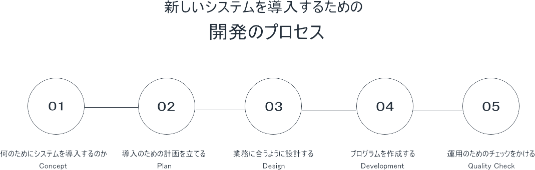 単にシステムを開発するだけではなく、社内の人間では気づきにくい運用上の問題点等を投げかけてみたり その解決策を提案させていただきます。